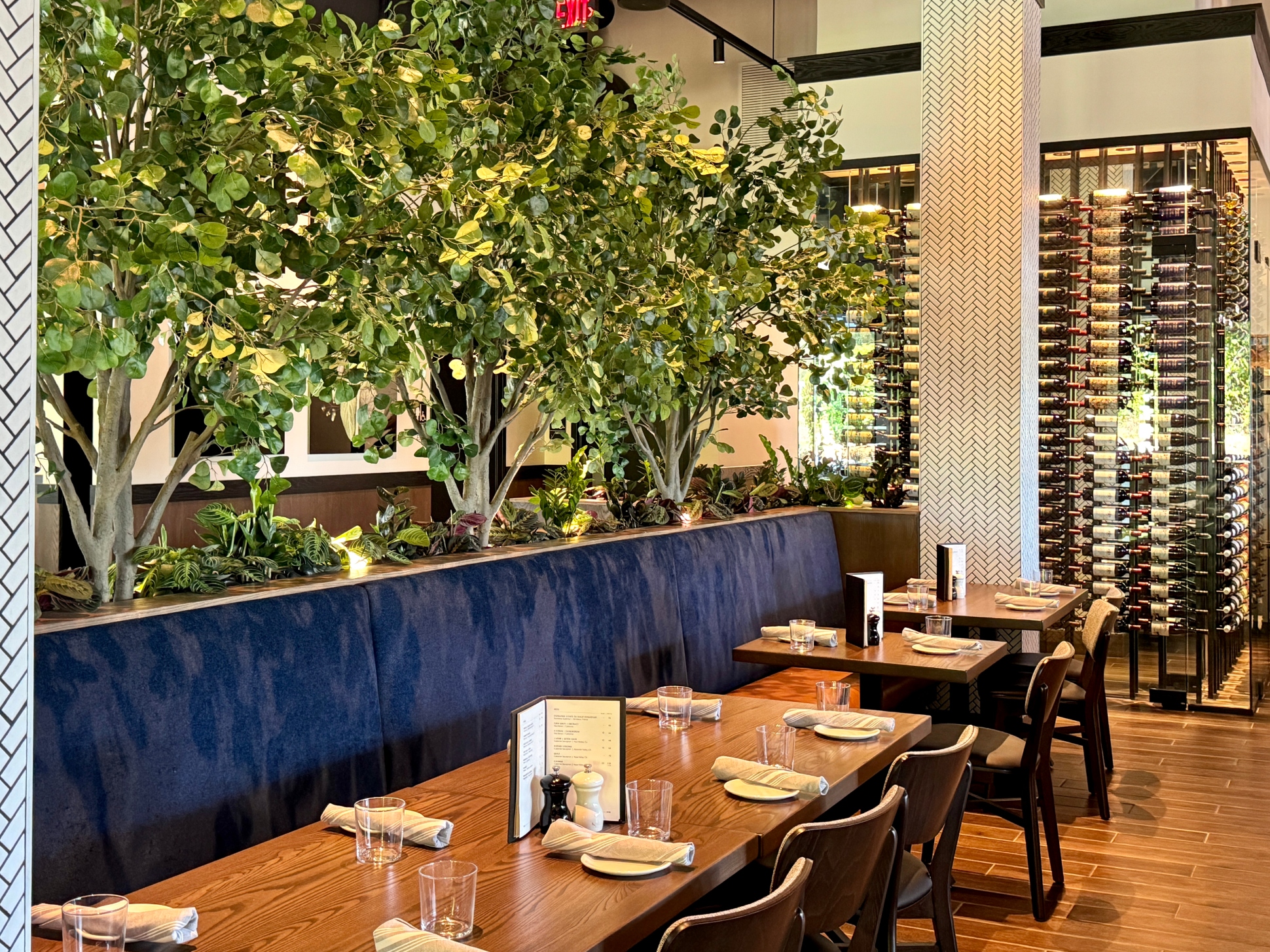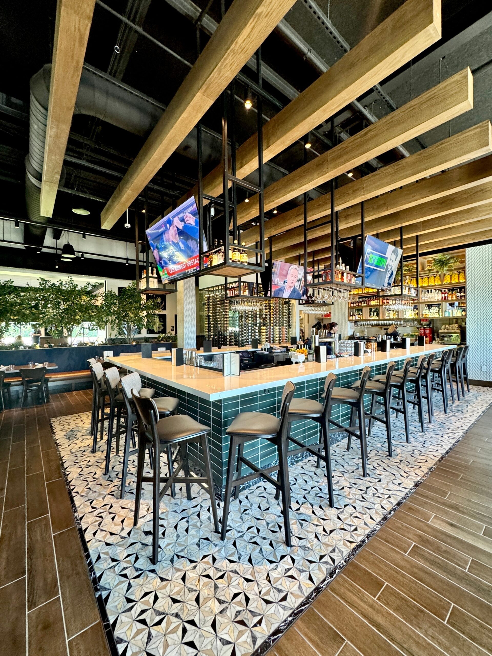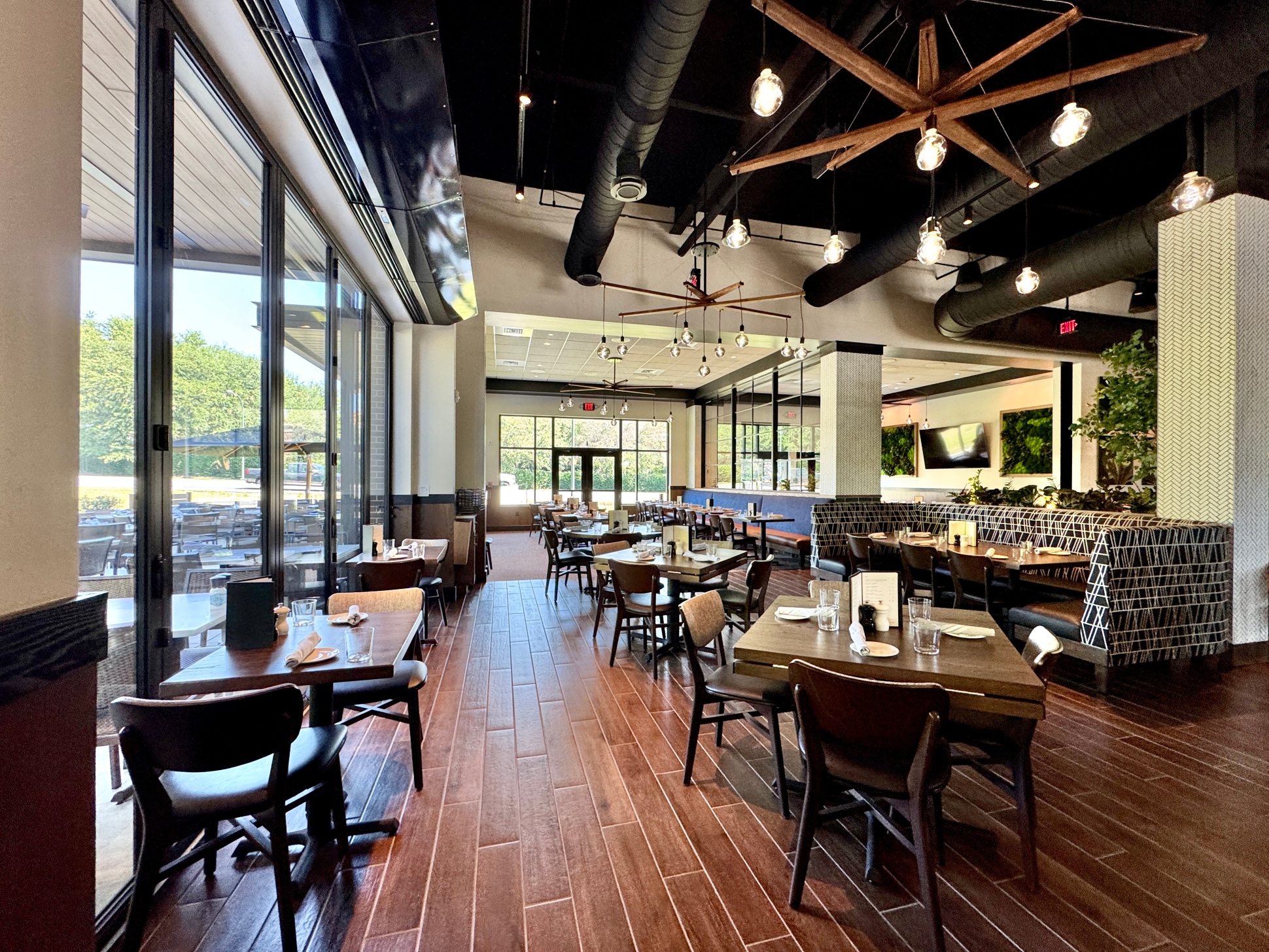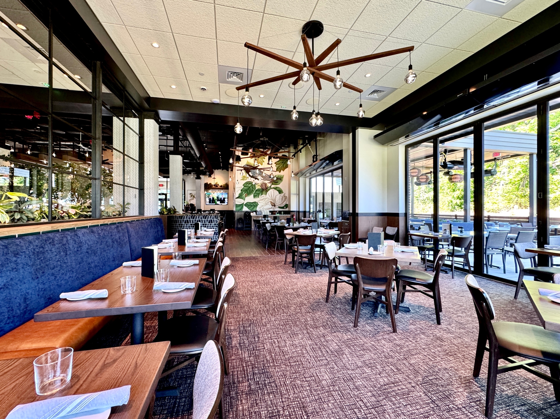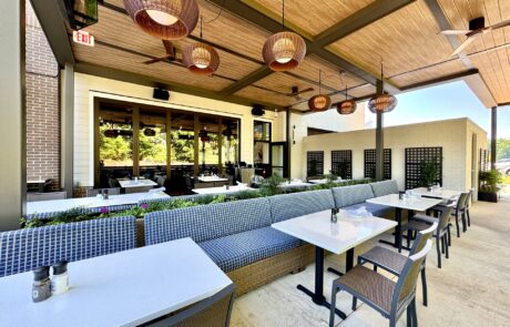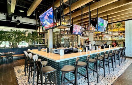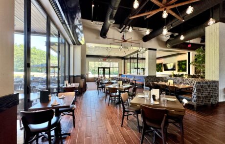 Burton’s Grill & Bar at Birkdale Place offers a stunning ambiance, featuring a modern and sophisticated design that is beautiful both inside and out. The interior has a modern yet timeless design, featuring a spacious 6,085-square-foot layout with 152 seats, accented by white quartz and living plant walls. A large-scale Audubon mural and lush greenery add a vibrant, elegant touch, striking the perfect balance between upscale and comfort. The exterior welcomes guests with a refined facade, leading into an interior that balances upscale elegance with a comfortable, inviting atmosphere. The design seamlessly connects the indoors with an expansive 93-seat outdoor patio through sliding doors, offering two al fresco dining options—one covered with fans and heaters, and an open section with umbrellas—perfect for year-round enjoyment. The restaurant also features a lively 28-seat bar and private dining rooms for special events. The restaurant boasts stylish and contemporary decor, combining warm lighting, rich textures, and elegant finishes throughout the dining areas and the bar. The thoughtful design creates distinct spaces for different dining experiences, whether guests are looking for a lively evening at the bar or a more intimate dinner. Beyond the appealing atmosphere, Burton’s Grill & Bar is known for its top-notch, scratch-made food, which includes a wide array of entrees, salads, and vegetarian options. The menu features classic American cuisine prepared with an emphasis on fresh, high-quality ingredients, catering to various dietary needs. The restaurant is also noted for its extensive gluten-free menu and ability to customize most dishes to accommodate dietary needs. With its beautiful setting and excellent food, this Burton’s Grill & Bar location provides a memorable dining experience that lives up to its reputation.
